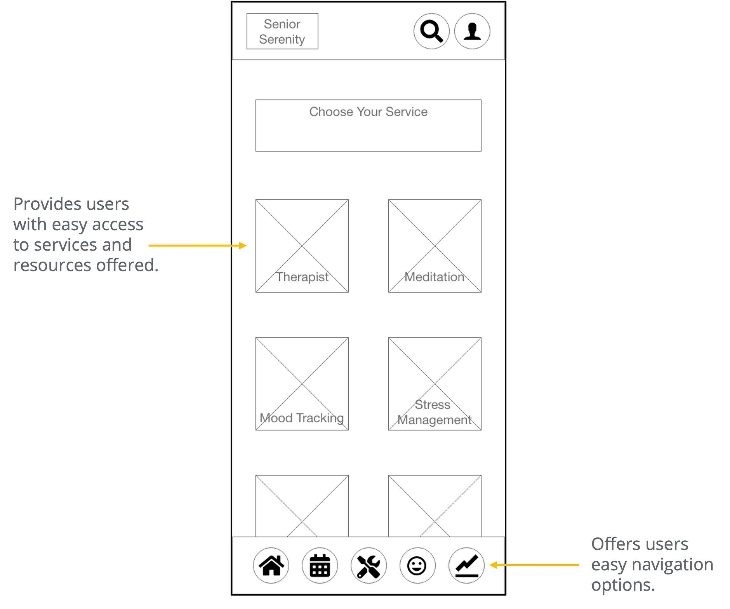 The Senior Serenity project was a user-centered design initiative aimed at creating an accessible mental health platform tailored specifically for senior citizens. With my background in psychology and UX design, I recognized the need to bridge the gap in mental health support for seniors, a demographic that often faces age-related challenges and technological barriers.