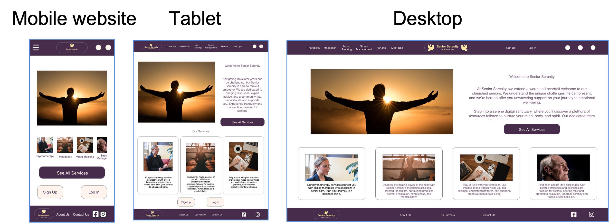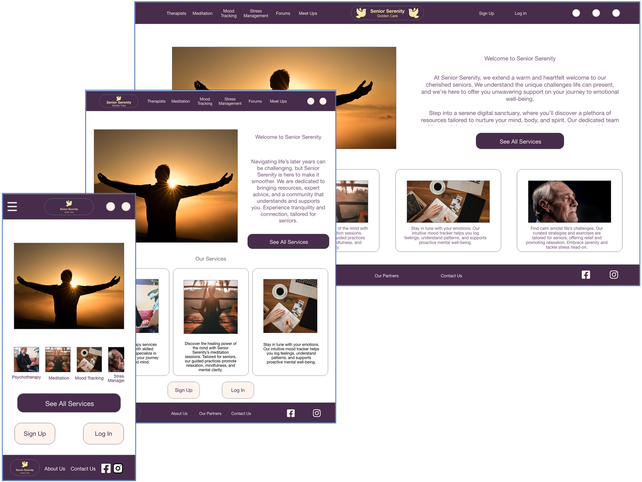 UX researcher and designer for a mobile app and responsive website for the Senior Serenity Online Mental Health Platform from conception to delivery.